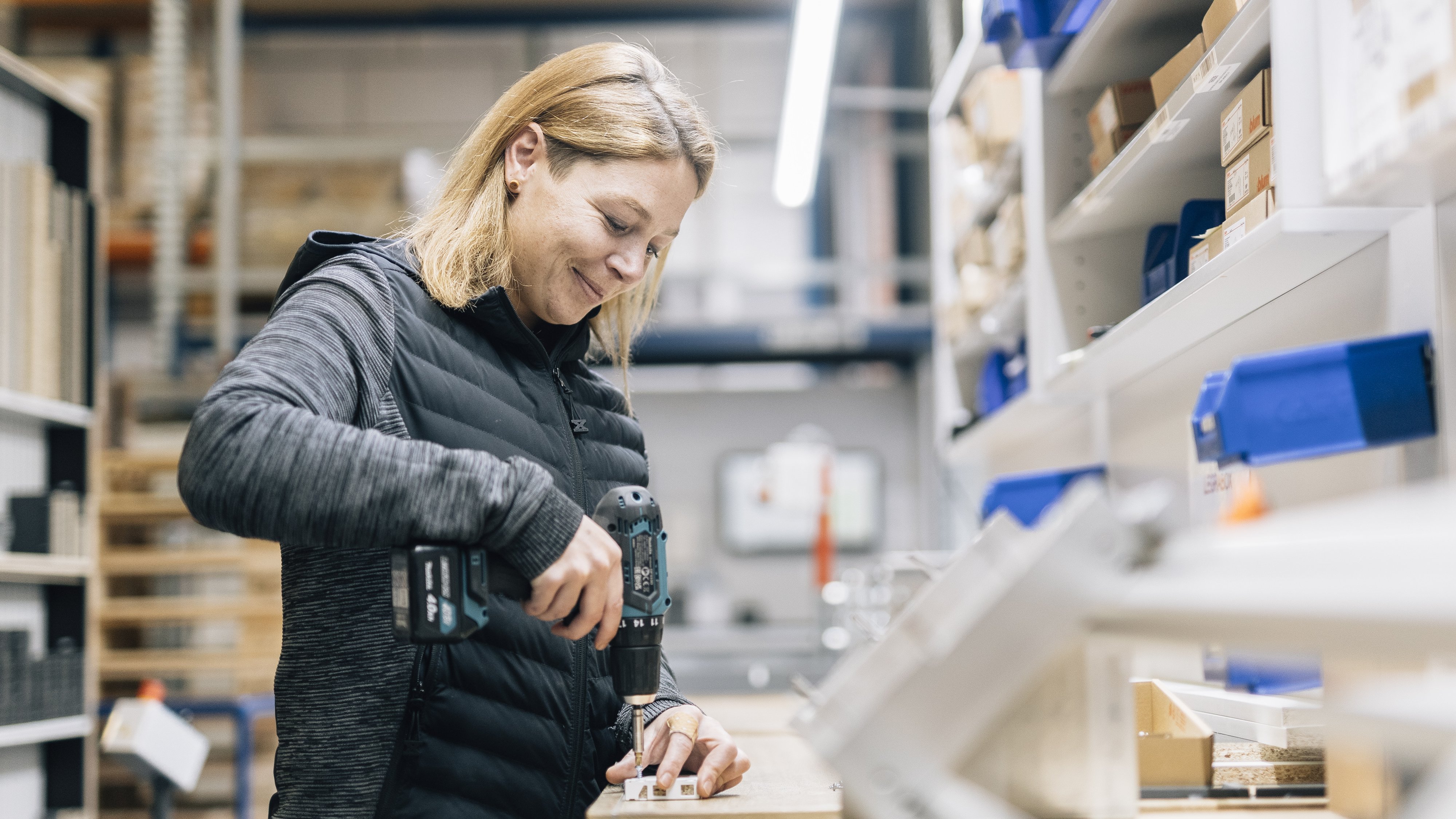 - Du bist zuständig für die Vormontage und das sorgfältige Verpacken von Schubkästen, damit alles passgenau und sicher weiterverarbeitet werden kann